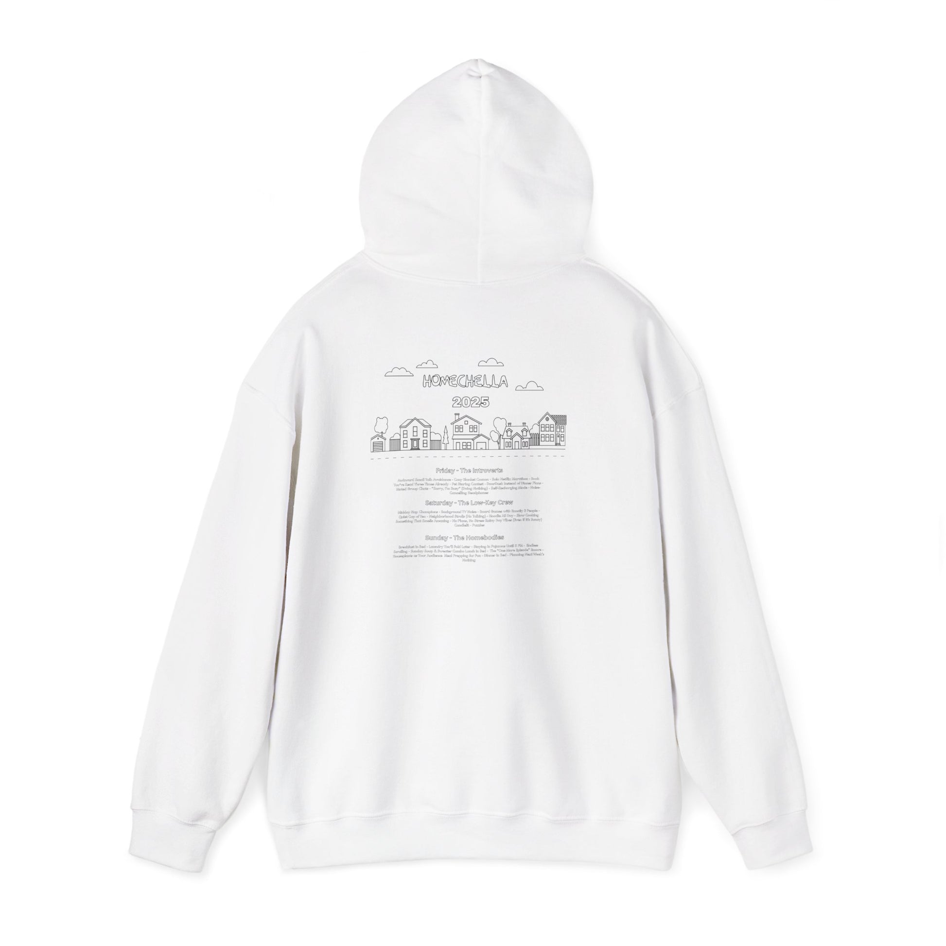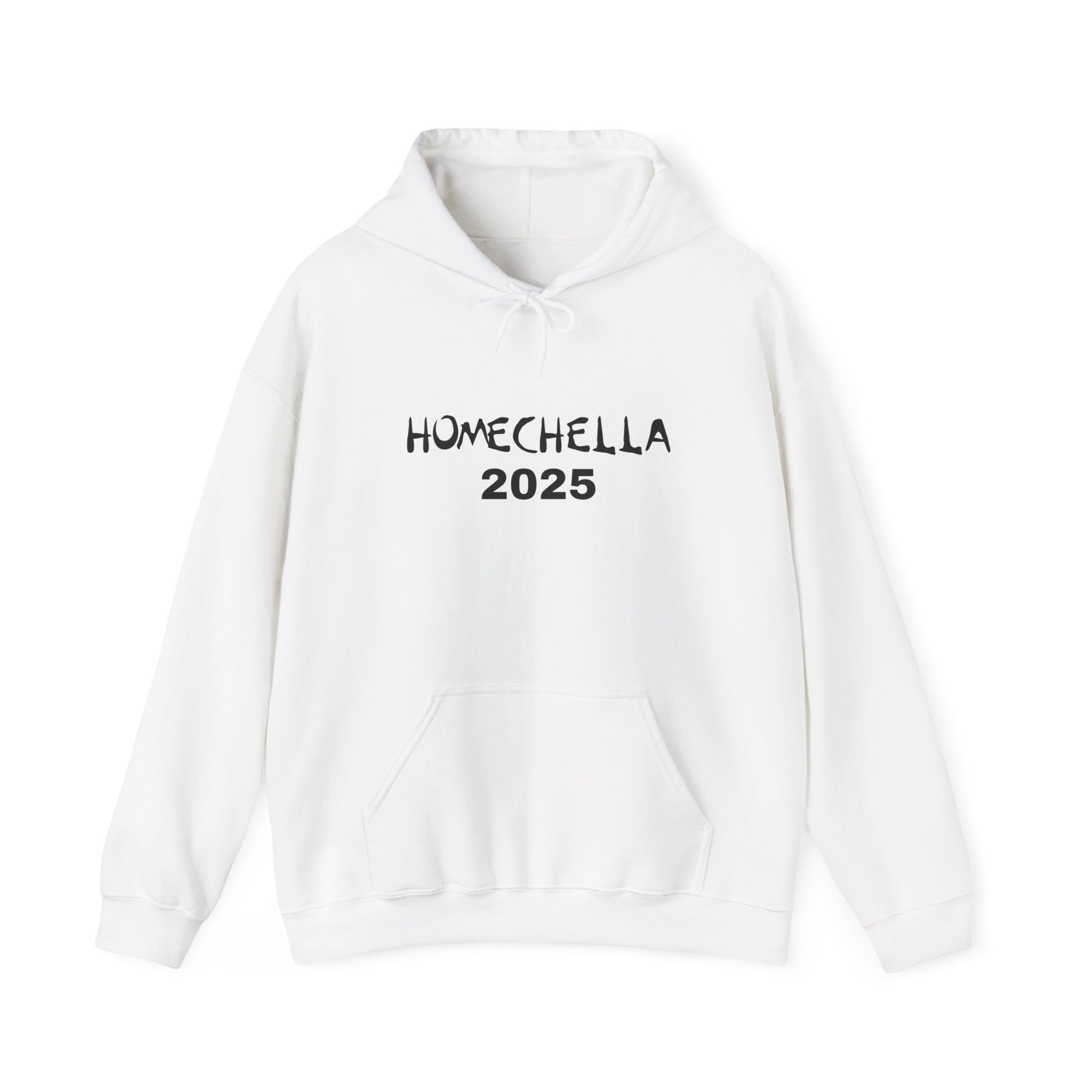 On the back of the tee and hoodie is the Homechella lineup of entertainment